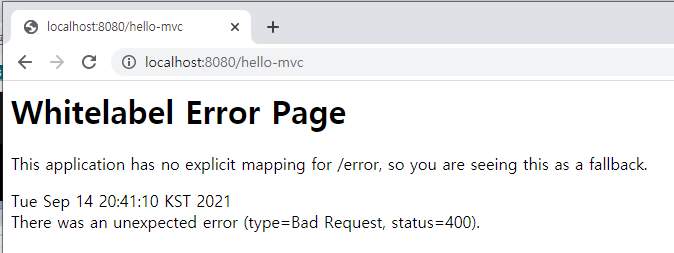 서버를 실행하고 localhost:8080/hello-mvc 로 가보자