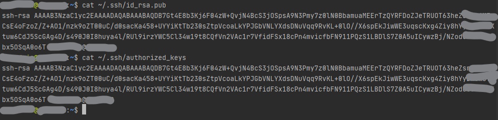 공개키와 autorized_keys 에 복사한 공개키를 확인해보자