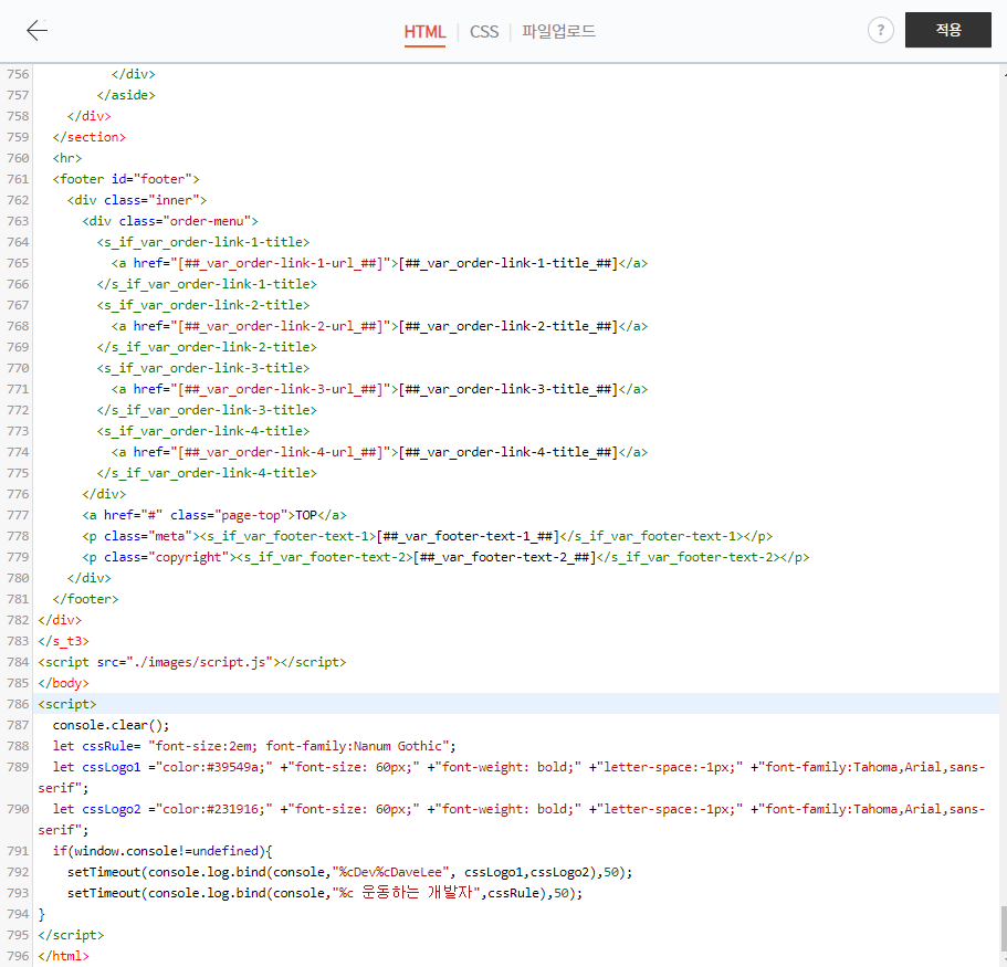 편집을 위해 티스토리 스킨편집 HTML 로 갔으나 저 스크립트가 보이지 않고, 저 스크립트의 소스가 어딘지도 못찾겠어서 접근할 수 없다.