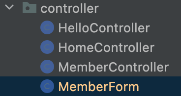 MemberForm 클래스를 만들어 보자.