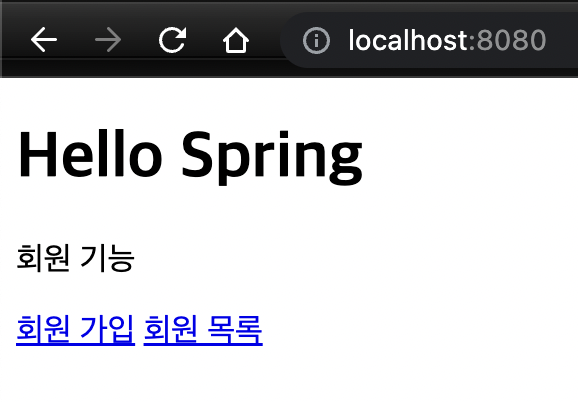 홈 화면에서 회원가입(등록)을 누르면 /members/new , 회원 목록(조회)을 누르면 /members url로 가도록 되어있으니 해당 요청을 처리하는 코드를 MemberController에 추가해 주자.