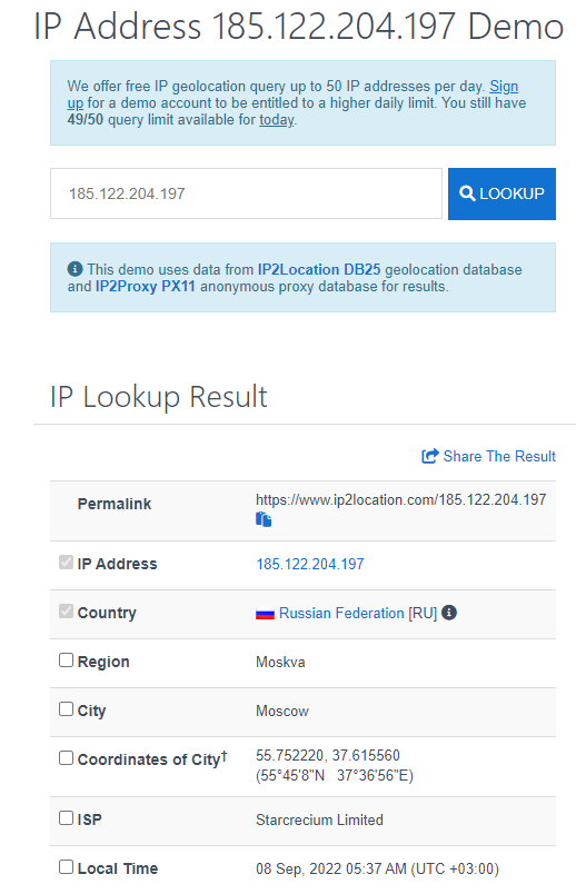curl IP 185.122.204.197 주소를 확인해 보니 러시아주소로 뜨고있습니다.