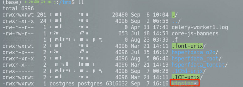 /tmp로 가보니 삭제한 kinsing 이 다시 생성되어있었습니다.