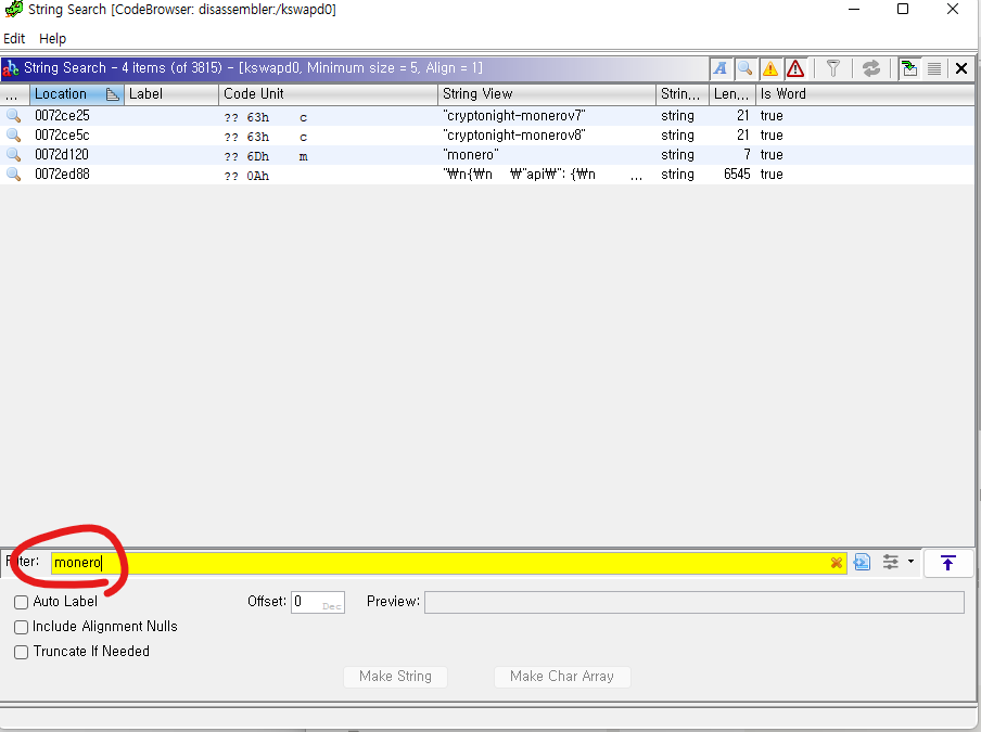 역어셈블러(disassembler)로 바이너리를 분석하여 채굴 풀 ( mining pool ) 세부 정보와 자격 증명을 추출할 수 있다고 합니다. (Ghidra -기드라 를 사용했다고 하여 똑같이 사용하였습니다)