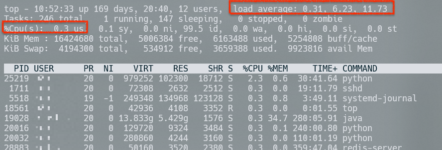 Cpu 가동율도 99퍼센트, load average 도 16 까지 올라가 있습니다.