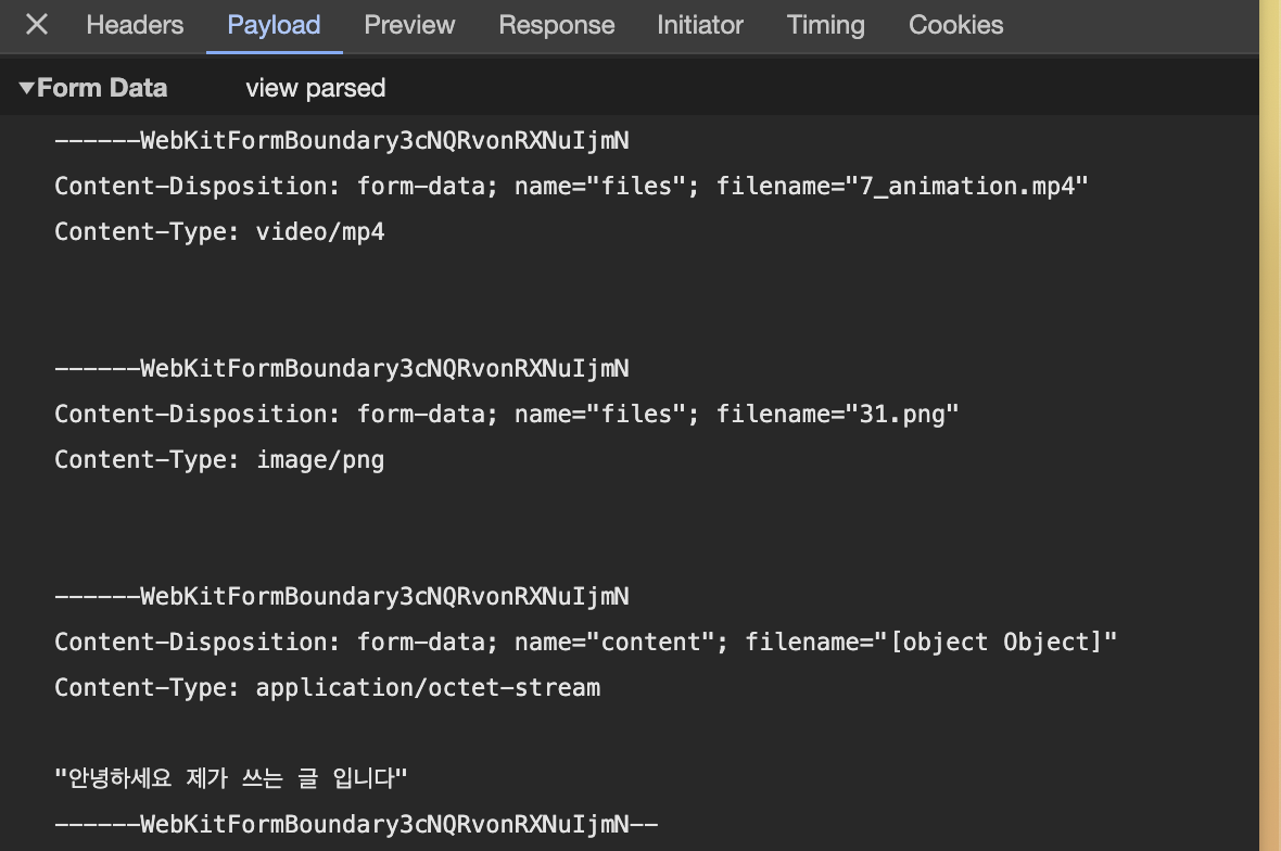 HTML form태그의 action 요청으로 multipart/formdata 형식으로 다중파일과 본문 내용을 전달 했었는데,