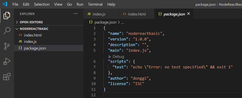 3. package , index.js 만들기