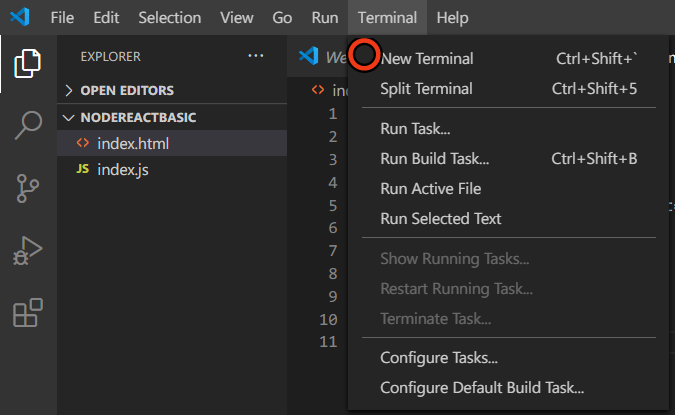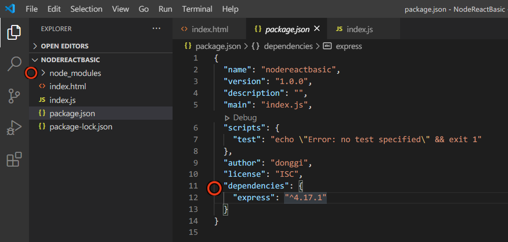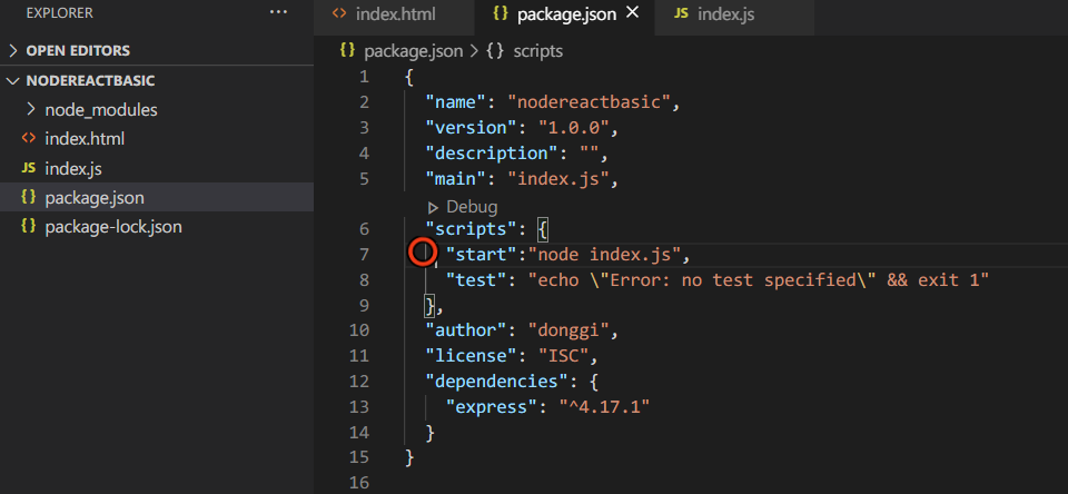 5. index.js 에서 기본적인 express js 앱 만들기