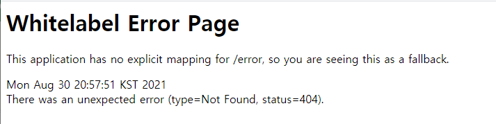Whitelabel 페이지가 뜨면 프로젝트 환경 설정에 성공!