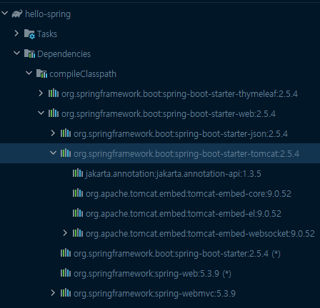 - spring-boot-starter-tomcat : 톰캣(웹서버)